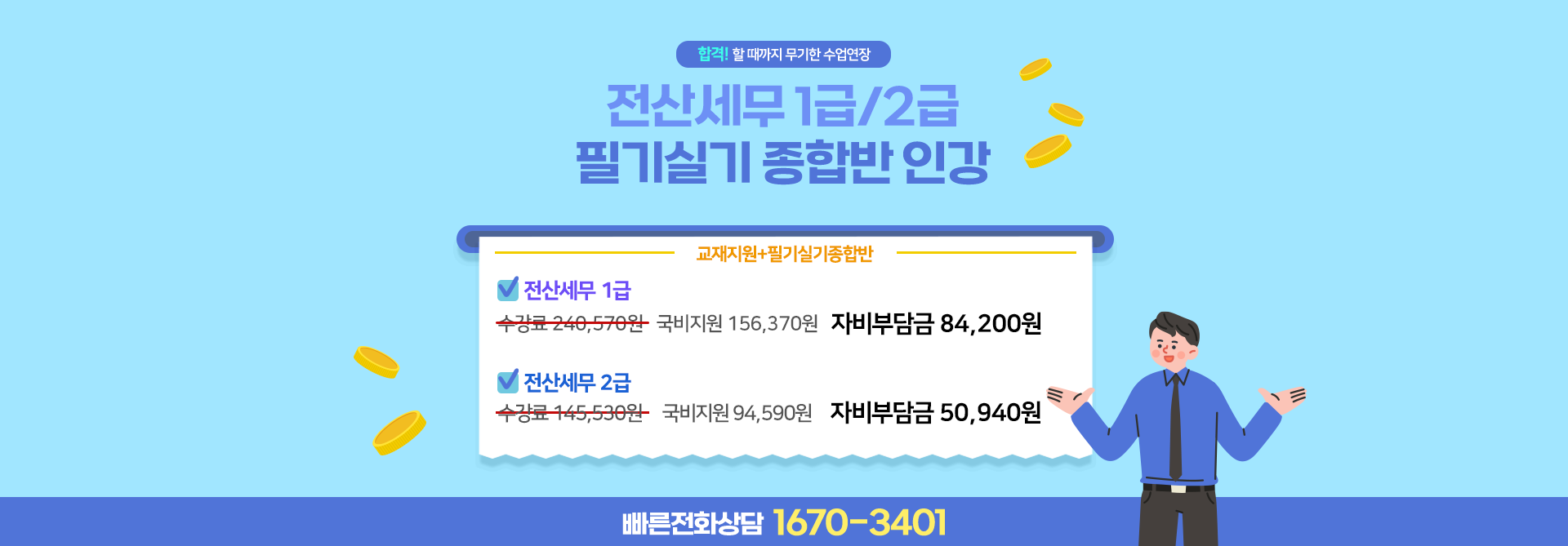 | 재무회계 원가회계 - 초기이월, 거래자료입력, 결산자료입력 | 70% | 90분 | 이론시험 객관식4지선다형 실무시험 전산세무 회계프로그램을 이용한 실기시험 |
