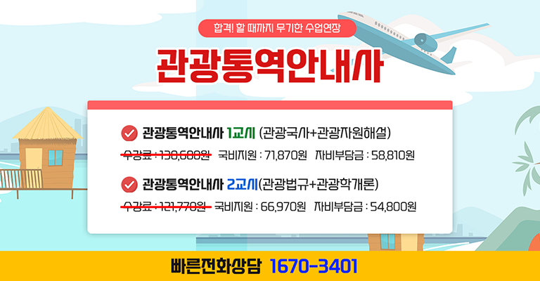 | 제 1차 시험 | 1 | 1. 국사 2. 관광자원해설 3. 관광법규 4. 관광학개론 |